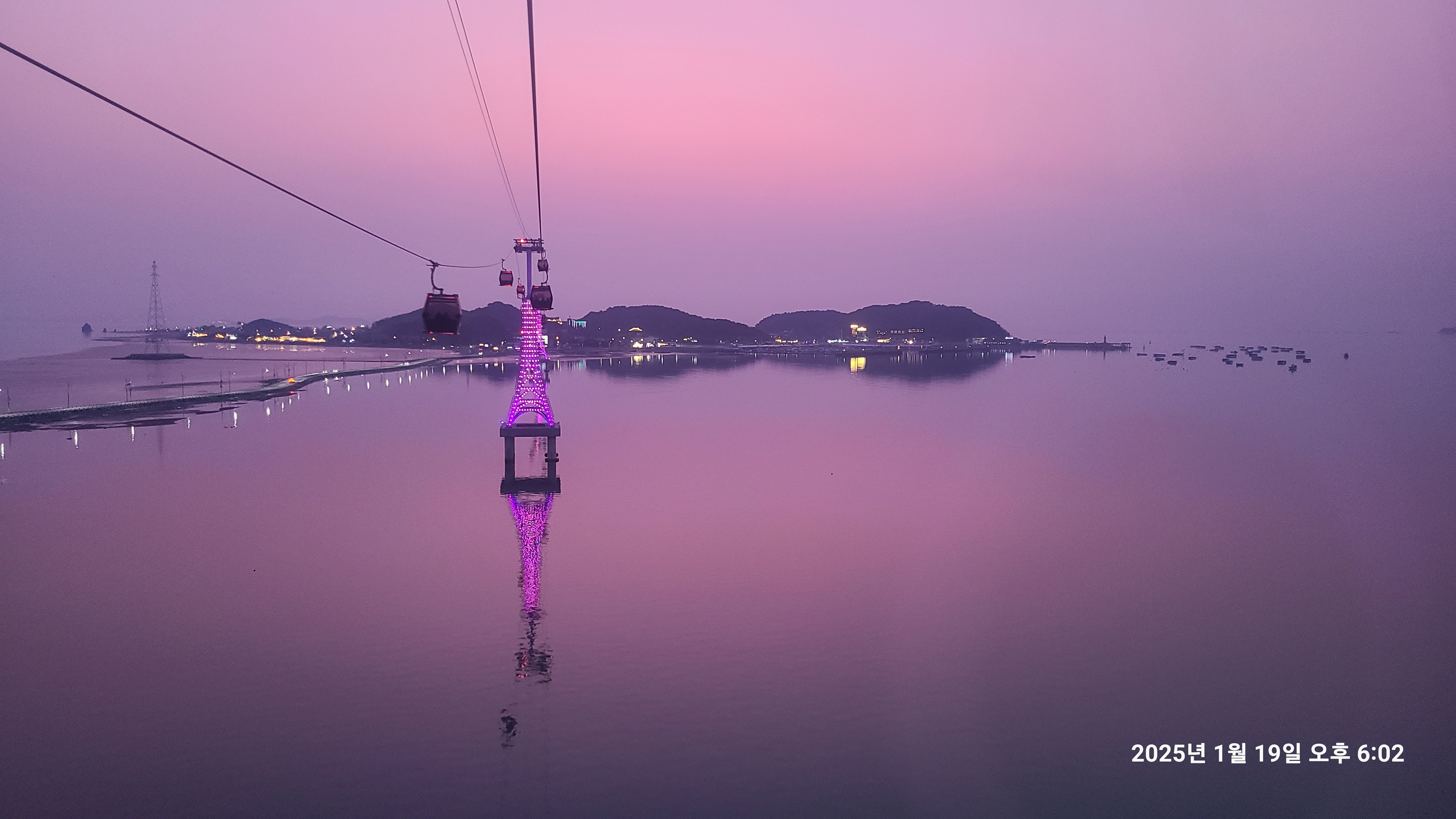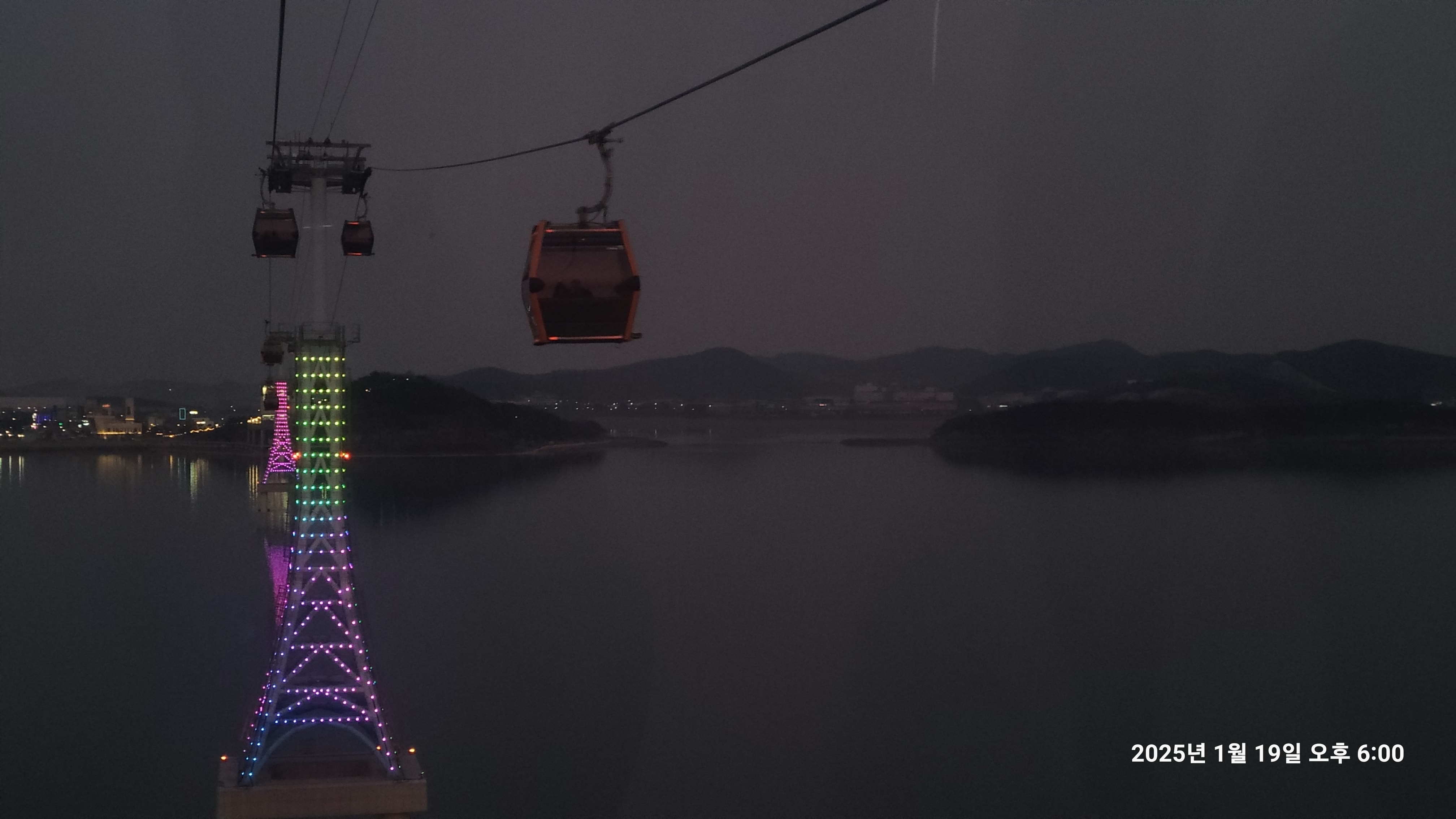케이블카에 불이 하나 둘 점등 되기 시작하고